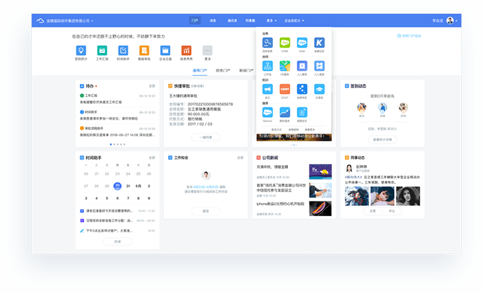 金蝶协同办公云实现企业多端协同办公,与ERP融合,助力企业业务运营和决策。