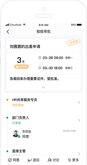 随时随地都能进行业务审批,一键催办/拉群发起讨论